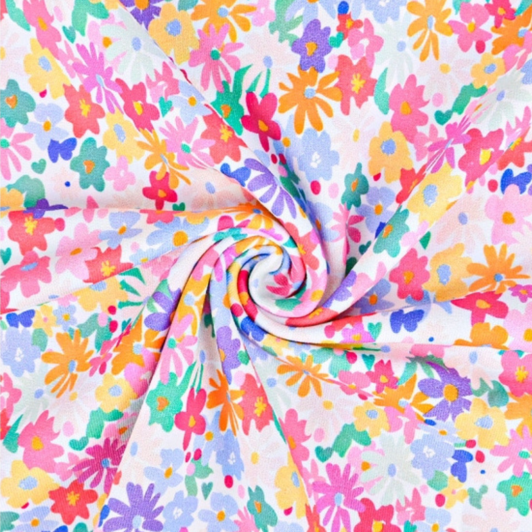 Bombažna prevešanka Cvetlična – bela – 099 je priljubljeno pletivo, ki združuje udobje, funkcionalnost in vsestransko uporabnost. Gre za mehko bombažno blago, ki je na sprednji strani gladko, na notranji strani pa ima značilno strukturo kratkih vozličkov, zaradi katerih je material še posebej prijeten na dotik.