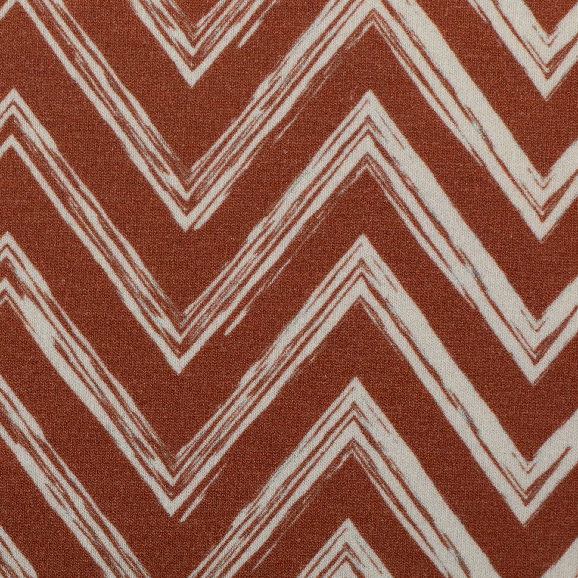 Bombažna prevešanka Geometrijski – oranžna – 713 je priljubljeno pletivo, ki združuje udobje, funkcionalnost in vsestransko uporabnost. Gre za mehko bombažno blago, ki je na sprednji strani gladko, na notranji strani pa ima značilno strukturo kratkih vozličkov, zaradi katerih je material še posebej prijeten na dotik.