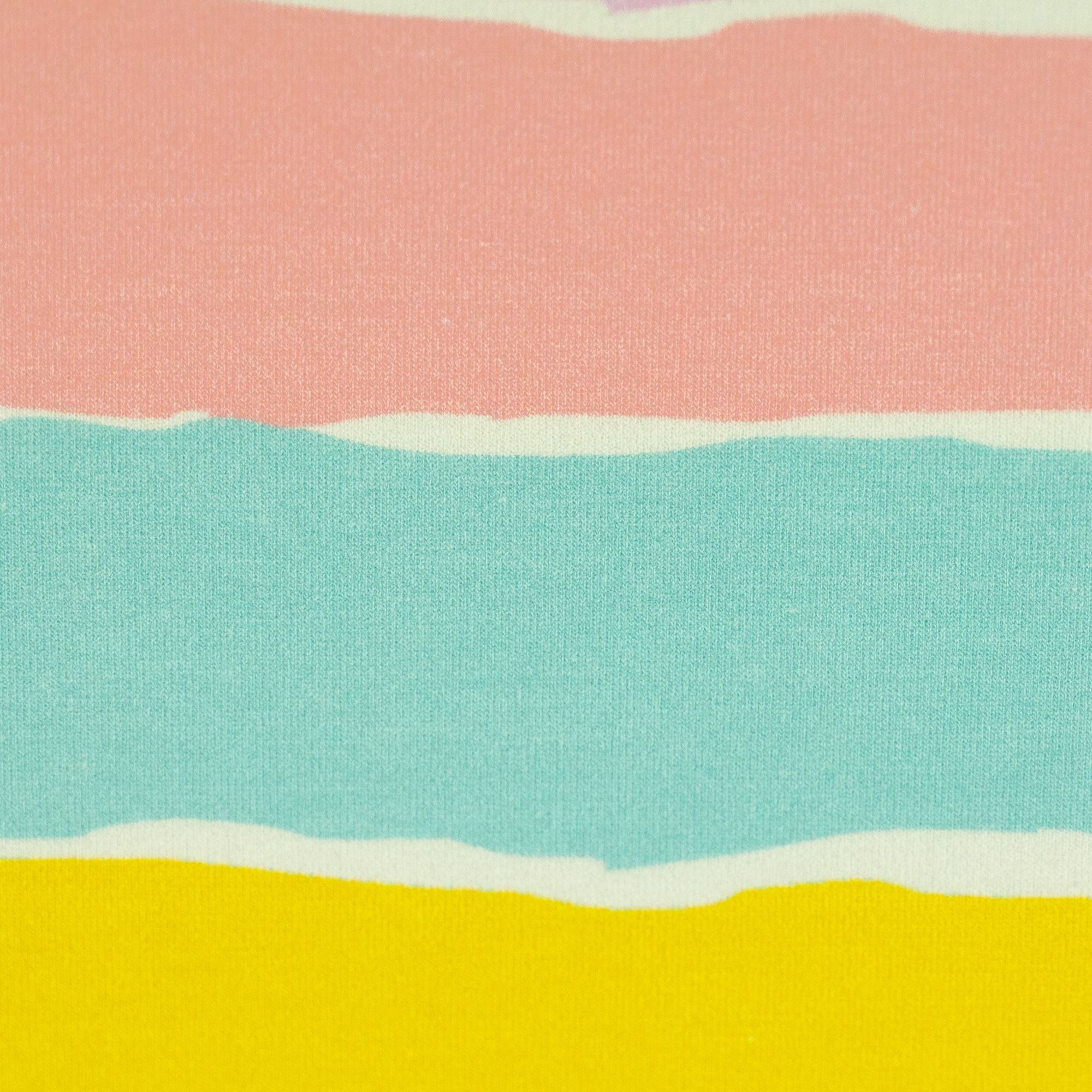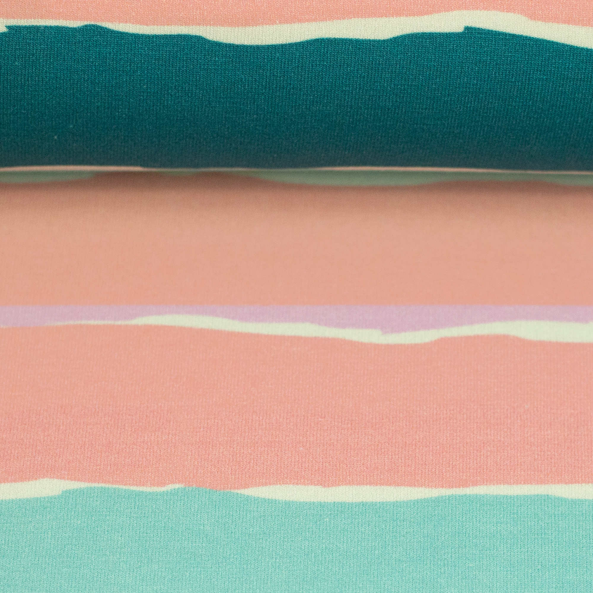 Bombažni jersey Črte – pastelne – 802 je kakovostno, mehko in elastično pletivo, ki zagotavlja izjemno udobje pri nošenju. Zaradi svoje raztegljivosti in prijetnega občutka na koži je zelo priljubljena izbira za izdelavo različnih oblačil za odrasle in otroke.