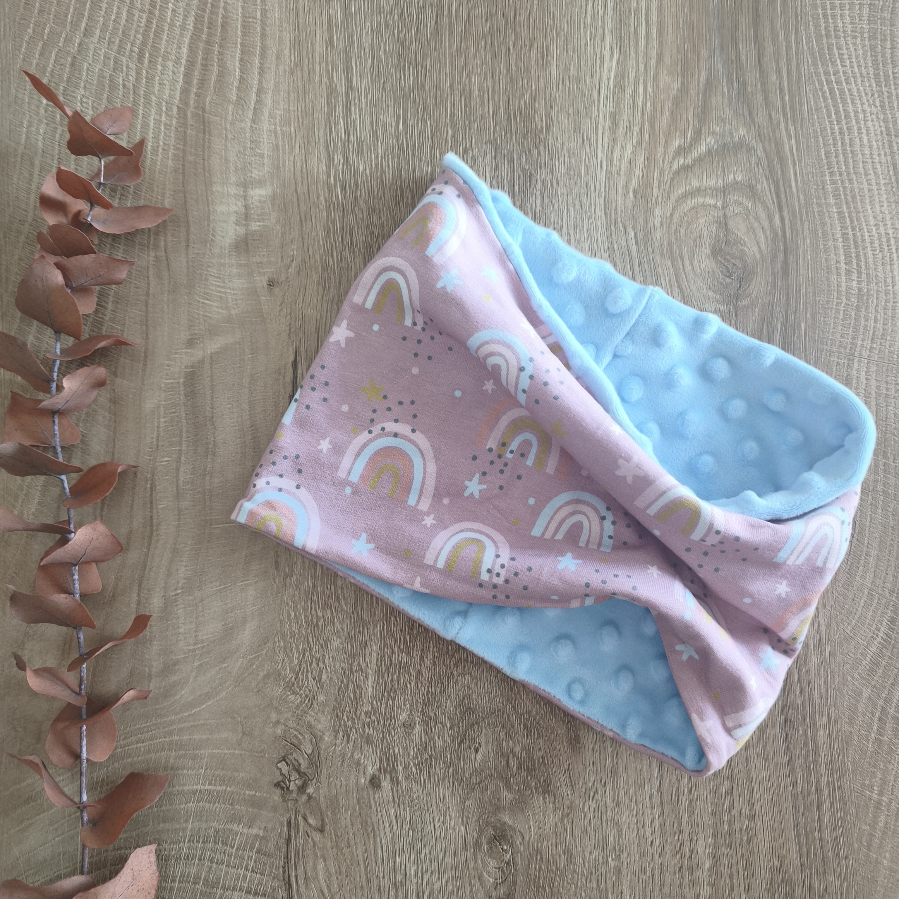 Otroški šal buff – roza z motivom mavric