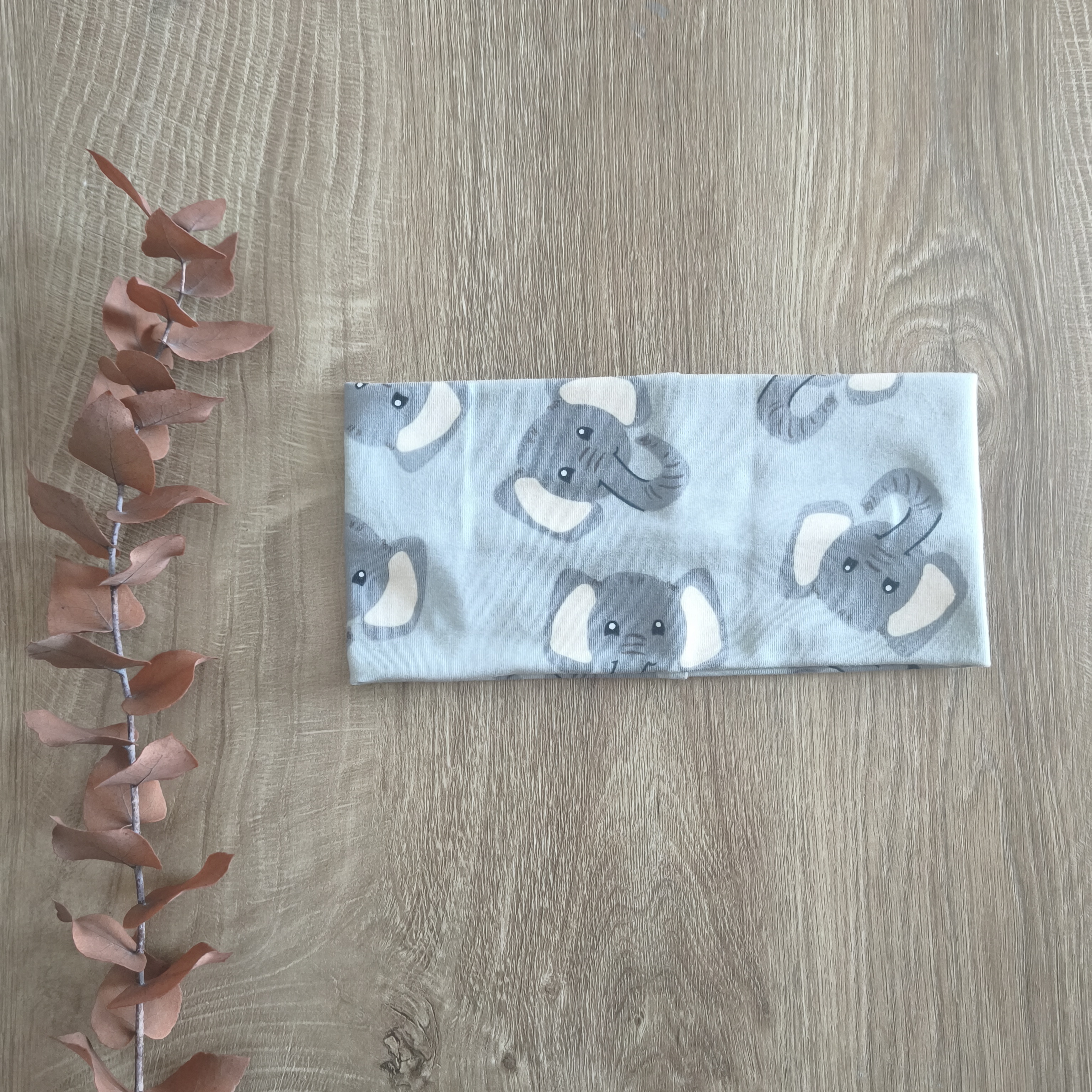 Otroški trak za ušesa – siv z motivom slonov za fanta