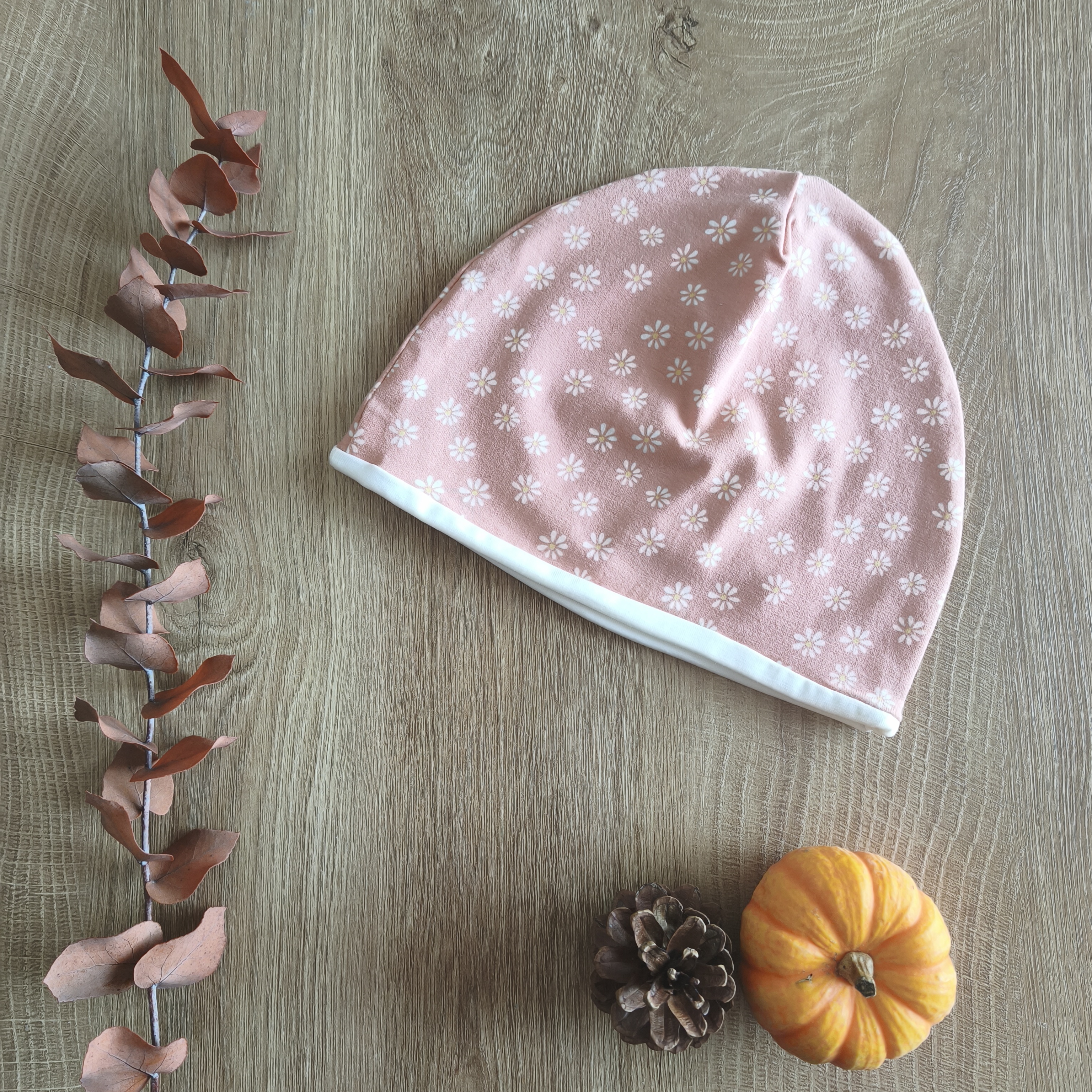 Prehodna kapa – marelična s cvetličnim vzorcem